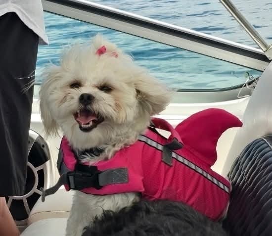 Our Phoebe was very skinny underneath all that fur. You could feel her ribs and it seems like one of them may have been broken at one point. She can be a little timid with strangers but warms up eventually. I have no idea what her life was like before she rescued us. However, now she is a very spoiled and loved little baby! She has tons of toys that she loves to scatter all over the house. When we come home she greets us at the door with a toy to give us. She gets the zoomies and runs like the wind until she wears herself out and plops on the floor! She loves her walks and is constantly looking for the neighborhood bunnies to chase. She is always ready for an adventure. She loves boating and road trips! She loves wearing dresses and gets so happy when its time to get dressed! Her snuggles will heal your soul!